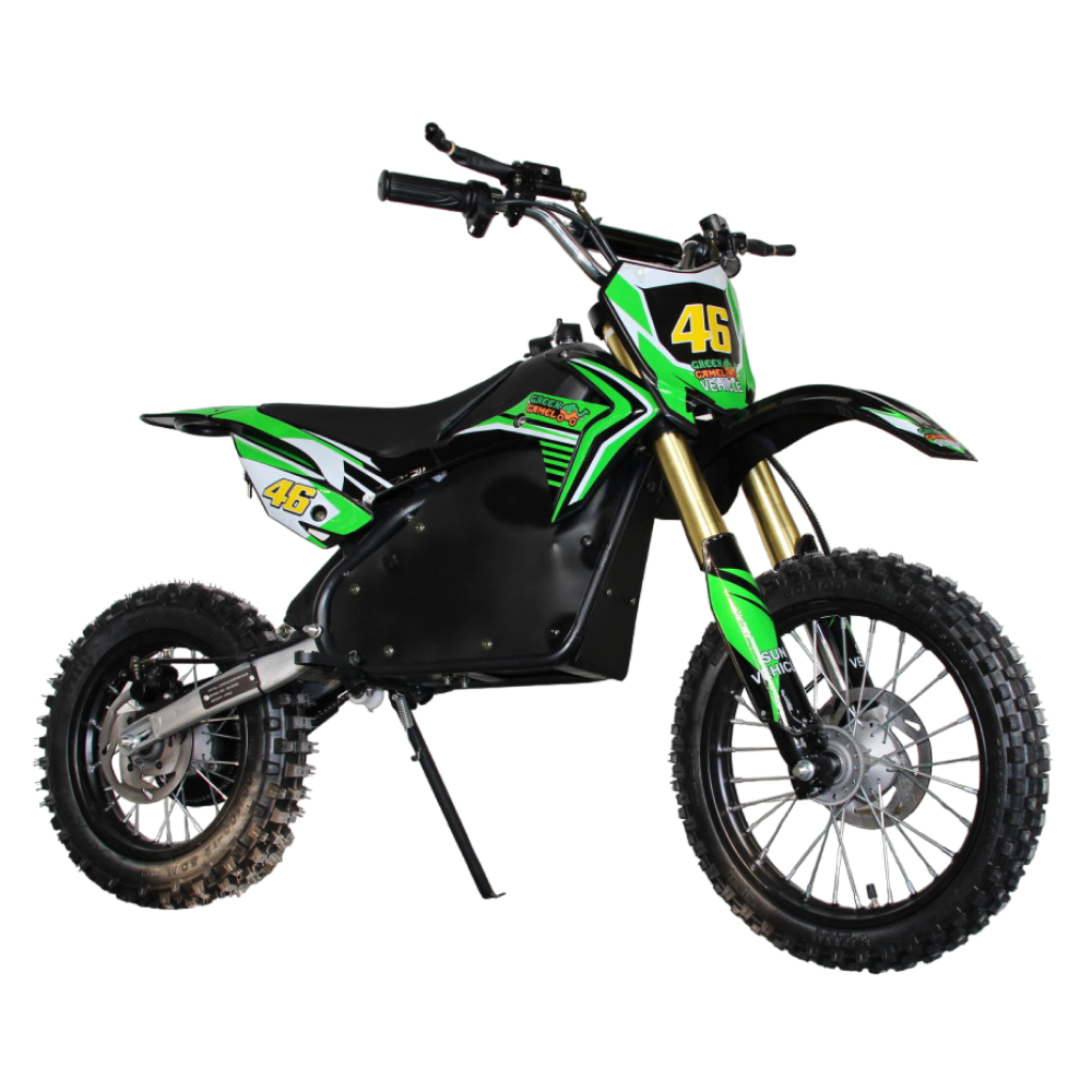 Электромотоцикл GreenCamel Питбайк DB500 в зеленом цвете - это уникальное транспортное средство, которое обеспечит вам незабываемые приключения на дорогах и трассах.