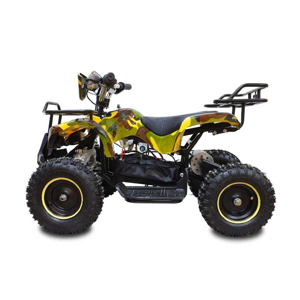 Расцветка данной модели называется «армейский жёлтый» – это сочетание ярких бойких цветов, которые нисколько не потеряют в глазах вашего ребёнка своей брутальности и крутости. Юный автолюбитель сразу полюбит этот квадроцикл.