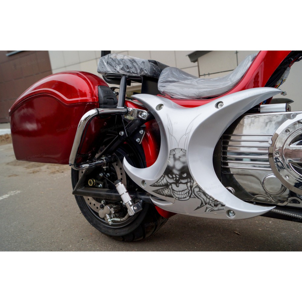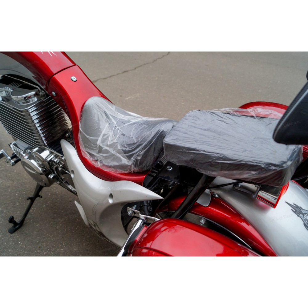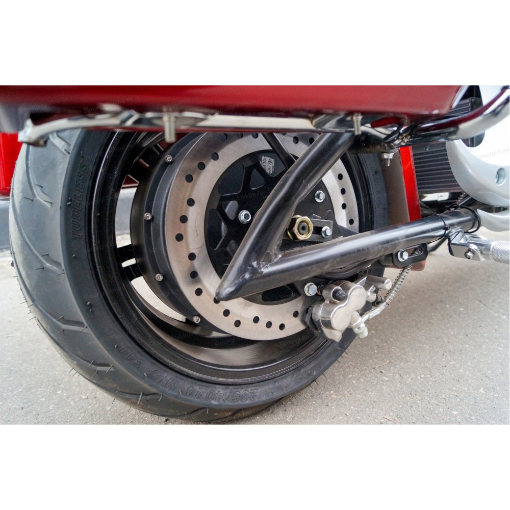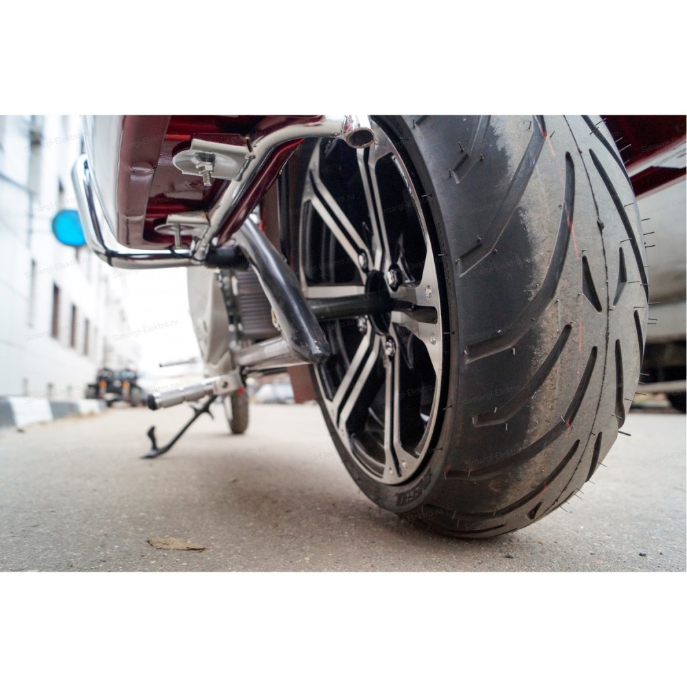 Модель оснащена мощным мотор-колесом на 3000 Вт, работающее от емкого фирменного АКБ. Указанная комплектация допускает развитие скорости до 61 км/час, гарантирует длительности пути на одной подзарядке до 60 км. Техника весом 89 кг и грузоподъемностью до 200 кг рассчитана на перевозку пассажира. Оба сиденья комфортные, изготовлены из мягкого повторяющего анатомические части тела материала. Пассажирское сиденье возвышается над водительским, увеличивает видимость спутника.