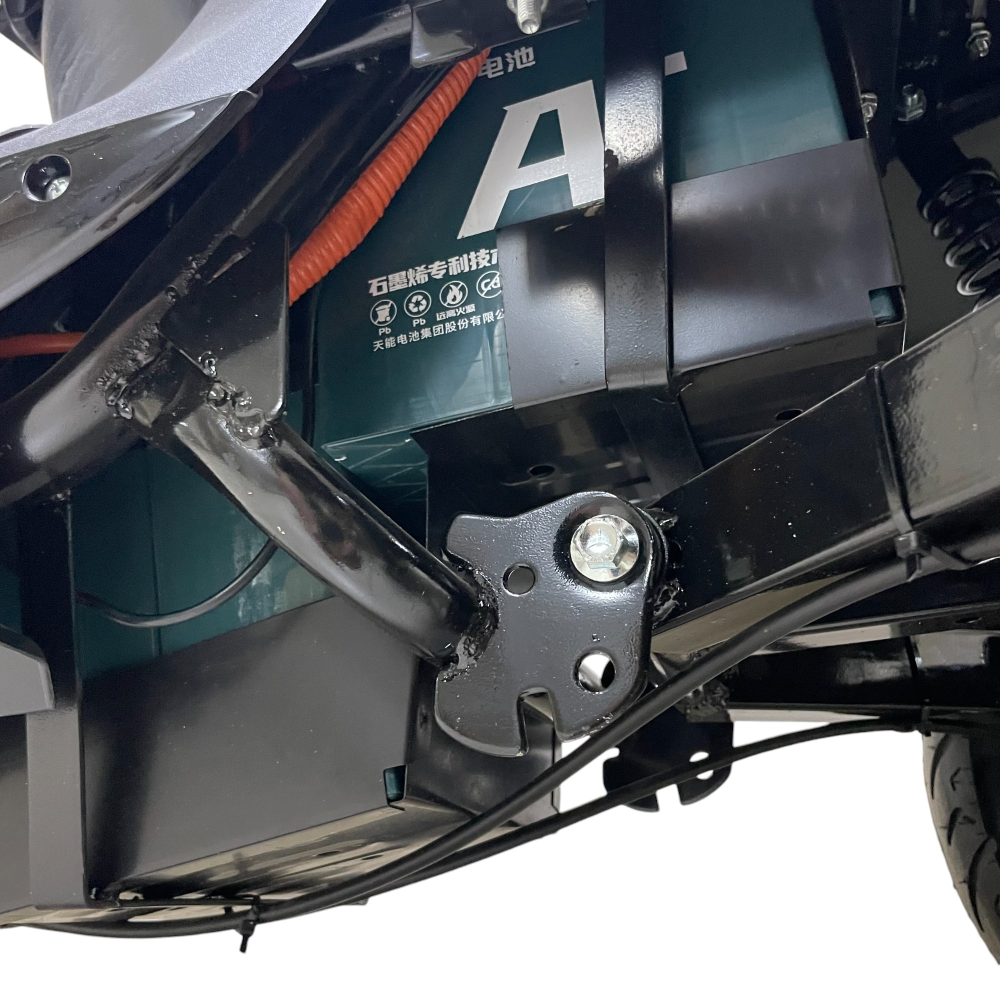 Электротрицикл оснащен мощным двигателем мощностью 1500W, что гарантирует непревзойденную производительность и надежность.